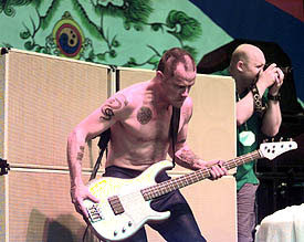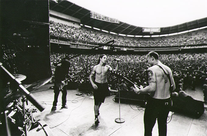 During their 1993 tour, guitarist John Fusciante quit the band, citing the pressures of constant touring, though it was rumored that he, too, had problems with heroin. Several years later he began a solo career. After chewing through two guitarists over the next few months, the band settled on ex-Jane's Addiction/Porno For Pyros guitarist Dave Navarro. The Peppers showcased their new lineup at the Woodstock '94 festival, where they appeared with light bulbs on their heads.
